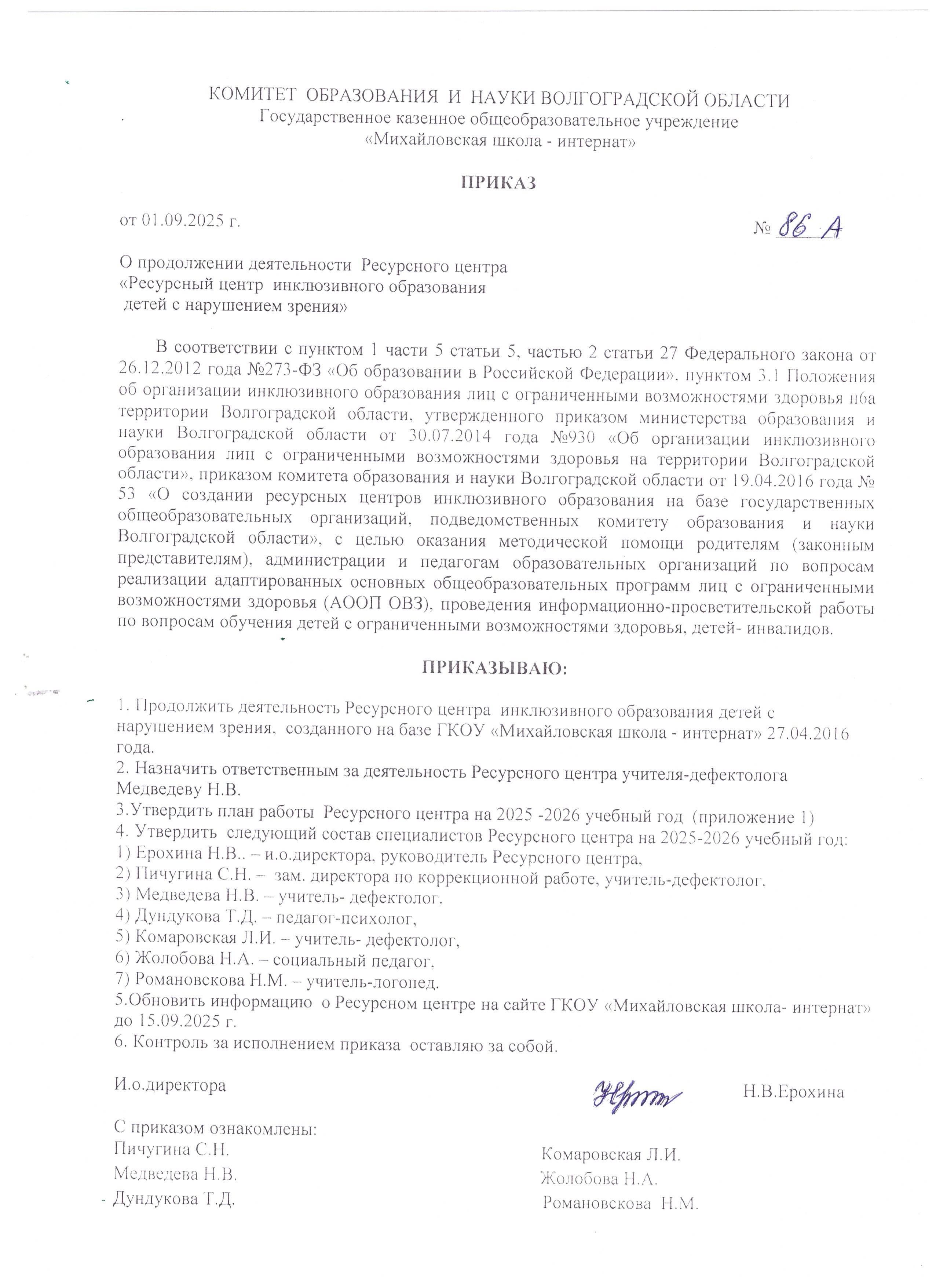 Приказ ГКОУ «Михайловская школа-интернат» на 2025-26 учебный год.