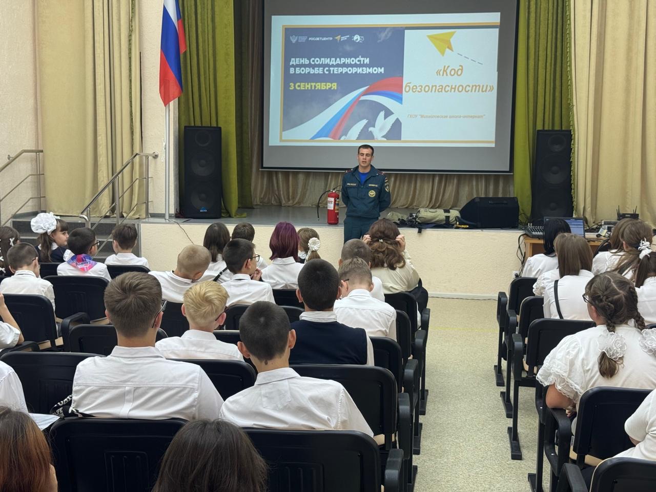 В преддверии памятной даты – День солидарности в борьбе с терроризмом, состоялась тематическая встреча, посвященная антитеррористической безопасности под названием «Код безопасности». Мероприятие было организовано советником директора по воспитанию в сотрудничестве со старшим инспектором пожарного надзора для обучающихся ГКОУ «Михайловская школа-интернат»