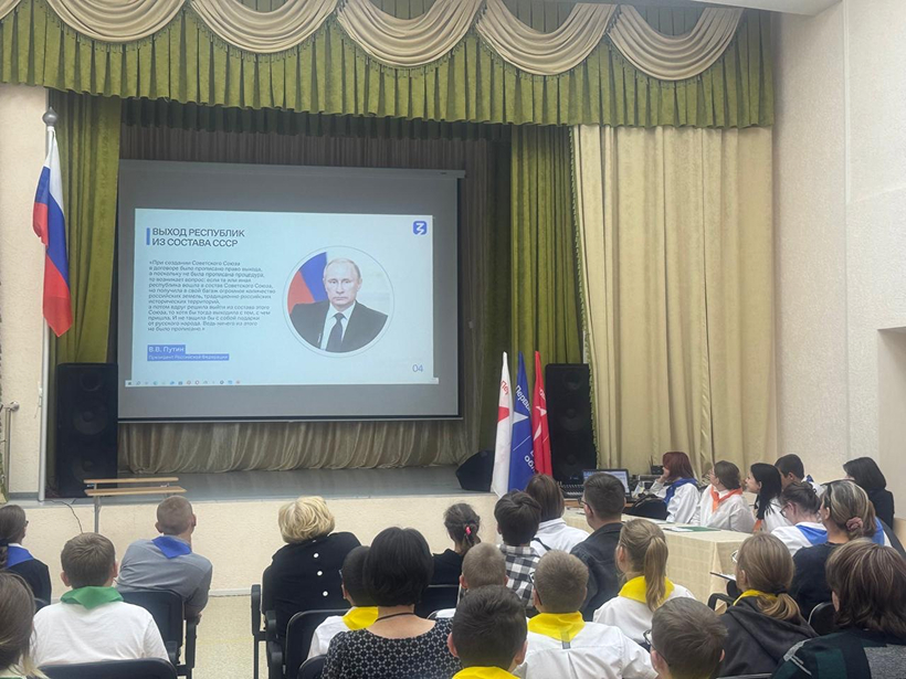 В рамках данного мероприятия обучающиеся прослушали лекцию «Возвращение в состав России: сила единства», организованной и проводимой федеральным государственным бюджетным учреждением «Российский детско-юношеский центр»