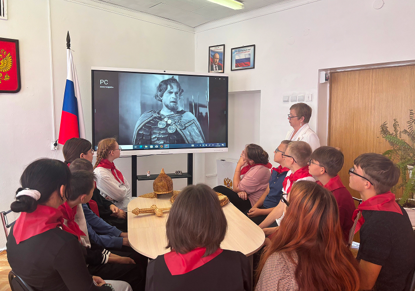 Закончилось мероприятие просмотром видеоролика – отрывка из художественного фильма 1938 г. В нем прозвучали слова А. Невского, ставшие крылатыми: «…идите и скажите всем, что Русь жива. Пусть без страха жалуют к нам в гости. Но кто с мечом к нам придет, тот от меча и погибнет. На том стояла, и стоять будет русская земля».